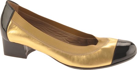 business casual dress for women Bruno Magli Women's Bordana Shoes,Gold Metallic Nappa/Black Patent,37.5 M EU